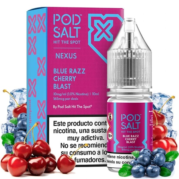 El líquido Nexus Nic Salt Blue Razz Cherry Blast captura la esencia de frambuesas azules y cerezas jugosas en un equilibrio perfecto de dulzura y acidez, complementado con un frescor que realza cada nota de sabor.
