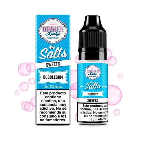 Descubre la mejor selección de sales de nicotina de una de las marcas más prestigiosas en el mundo como es Dinner Lady. Desde las mejores sales frutales hasta las más dulces, ¡no echarás ninguna en falta! El Bubble Gum Nic Salt presenta un inimitable sabor a chicle con el que sentirás que, en lugar de vapor... ¡echas pompas con cada bocanada! El inconfundible sabor de tu infancia convertido en eLiquid. Los top ventas de Dinner Lady ahora en formato sales de nicotina para colmar como nunca tu mejor experiencia de vapeo.