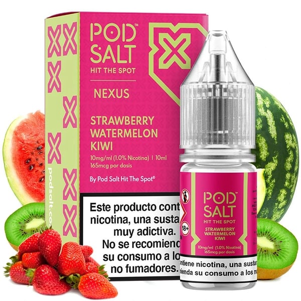 El líquido Nexus Nic Salt Strawberry Watermelon Kiwi ofrece una fusión de sabores donde la dulzura de la sandía y las fresas se combina armoniosamente con el toque tropical del kiwi, creando una experiencia de vapeo refrescante y frutal.